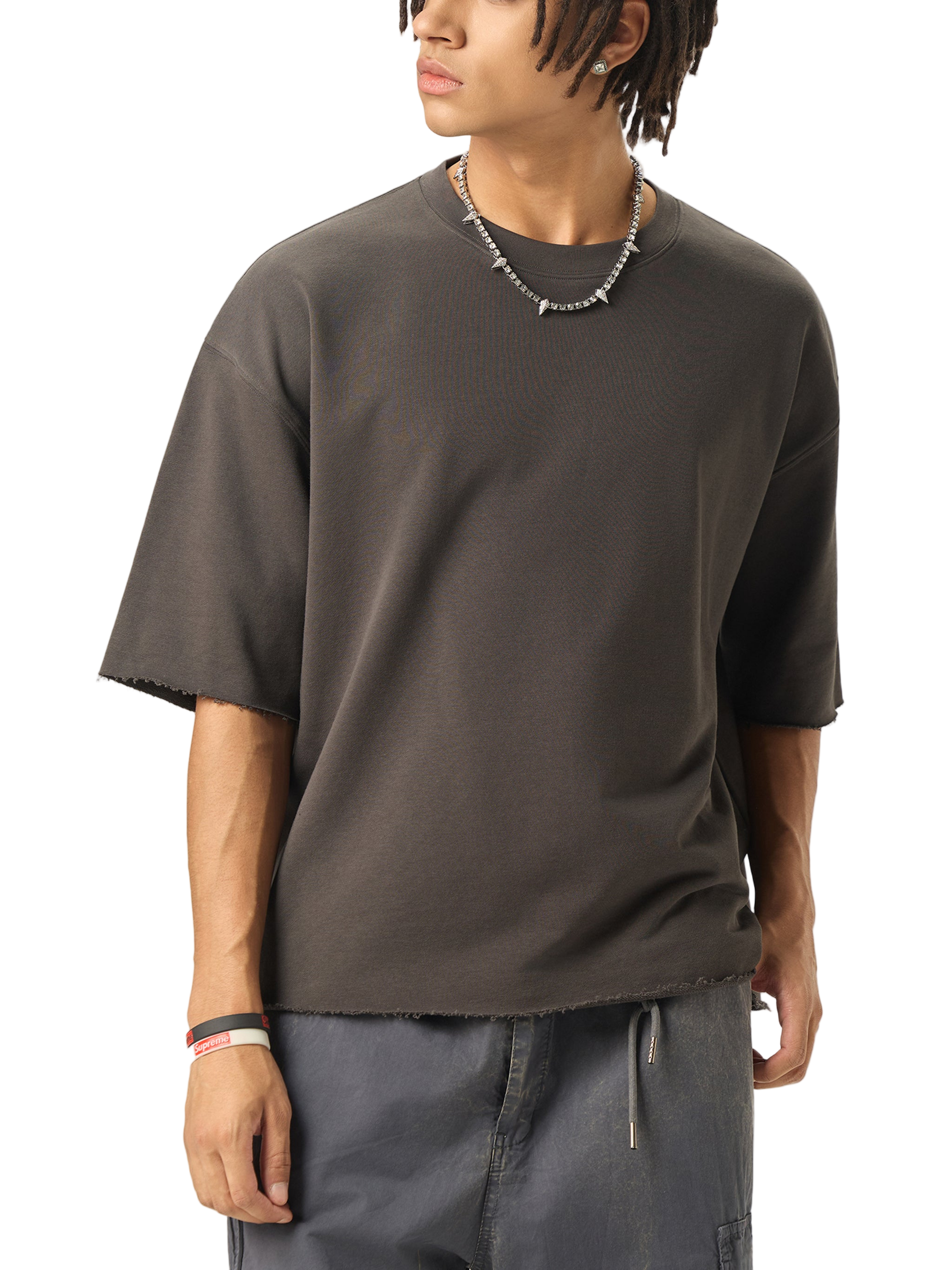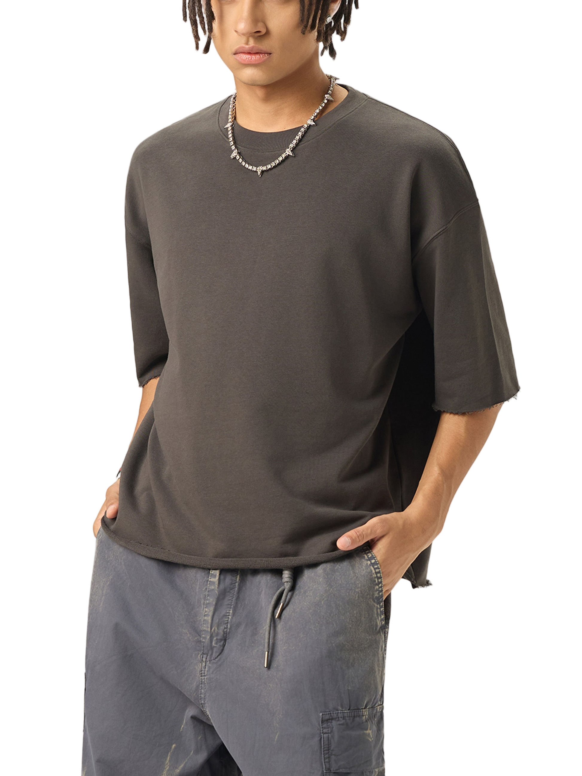 Boxy Half-Sleeve Raw-Edge T-Shirt